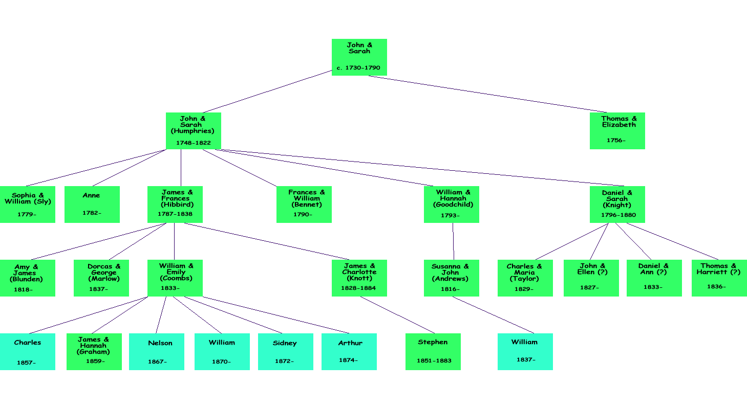 This Chart represents the Rampton families whose details will be found in the Froyle section of this One-Name Study. In order to see the make-up of a particular family click on the relevant box, or alternatively begin at the beginning, by clicking on one of the top level boxes, and navigate through the generations. [Due to the size of this family, it is necessary to scroll this chart both horizontally and vertically].